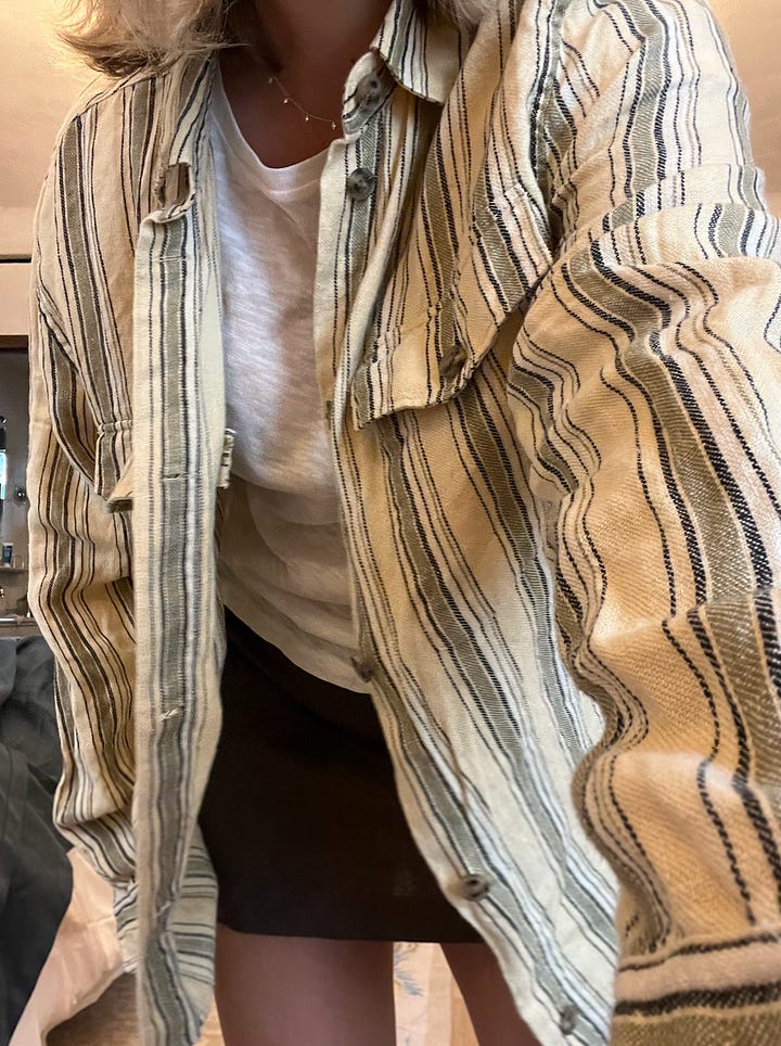 Shirt: This is Rhys’s shirt as I was running out of warm clothes, but love this yellow stripe and its a heavy linen which is nice and wam but also breathable. Link here.